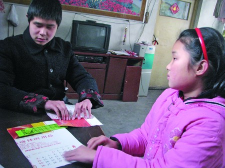 泰安盲人學校團委副書記陳方利告訴記者,學校平時都注意搜集一些合適的舊掛歷,裁剪好后給盲生們代替盲文紙做練習用!皩W校大部分學生的家庭都比較貧困,生活費、學雜費等國家和學校都有補助,對學生來說唯一有負擔的可能就是盲文紙的費用了