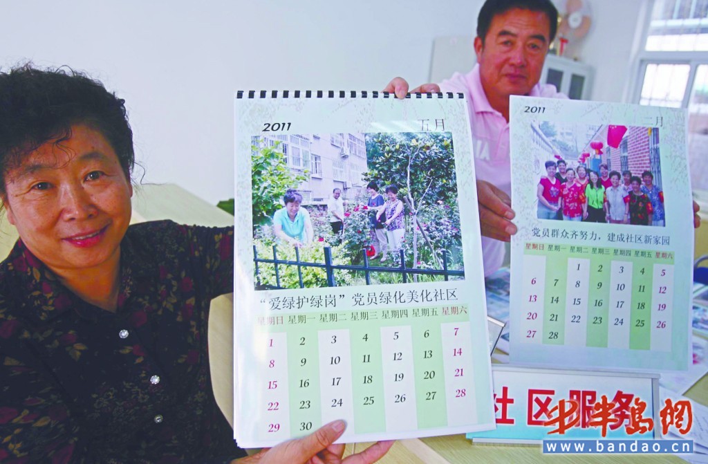 10月8日上午,在阜新路街道南山社區(qū)內(nèi),工作人員正在觀看剛制作好的社區(qū)生活掛歷。據(jù)了解,為了促進鄰里之間和諧相處,該社區(qū)專門將居民日常生活中的照片印制到掛歷上,免費發(fā)給社區(qū)居民,拉近了鄰里之間的關(guān)系。